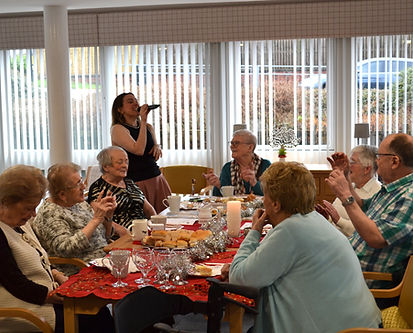 The group members had collected money regularly and put it to good use with a lovely buffet lunch and a singalong with entertainer Laura Coburn.